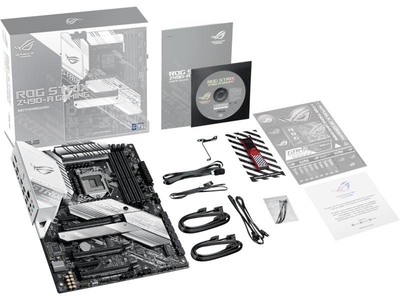 | Inkluderade tillbehör | ROG fläktklistermärken, RGB (RGBW) förlängningskabel till LED-remsa, ROG-nyckelring, ASUS fläkthållare, Termistorkabel, Gummidyna, 2 x M.2-skruvar, RGB riktbar förlängningskabel för LED, ROG tackkort, Kabelband |