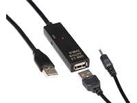 Normal längdgräns på USB 3.0 är 3 m men denna kabel är aktiv och har en inbyggd förstärkare (repeater) som säkerställer att kabeln levererar full hastighet, även om den överskrider standardlängden. Ingen ytterligare strömadapter krävs.