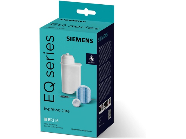 Siemens TZ80004B Espresso care set Siemens EQ. Espresso-skötselsetet säkerställer den bästa aromen och förlänger livslängden. Bästa aroman och optimal rengöring med rengöringstabletter i EQ-serien - originaltabletter från Siemens. Bästa skötseln genom smidigt kalkavlägsnande med avkalkningstabletter från EQ-serien - originaltabletter från Siemens. BRITA INTENZA original-vattenfilter - särskilt utvecklat för Siemens kaffemaskiner. Specialutvecklad för att säkerställa bästa doft och förlänga maskinens livslängd. Den till 100 % perfekta matchningen. 100 % njutning genom Value Care med originaltillbehör från Siemens. Funktioner Inkluderar alla komponenter som är nödvändiga för optimal skötsel och rengöring av helautomatiska espressomaskiner. Skötselsetets innehåll: 10 rengöringstabletter, 3 avkalkningstabletter, 1 BRITA Intenza-vattenfilter, 1 speciell rengöringsborste för mjölksugslang/-rör Lämplig för alla helautomatiska kaffemaskiner i EQ-serien samt inbyggda kaffestationer Säkerhetsdatablad