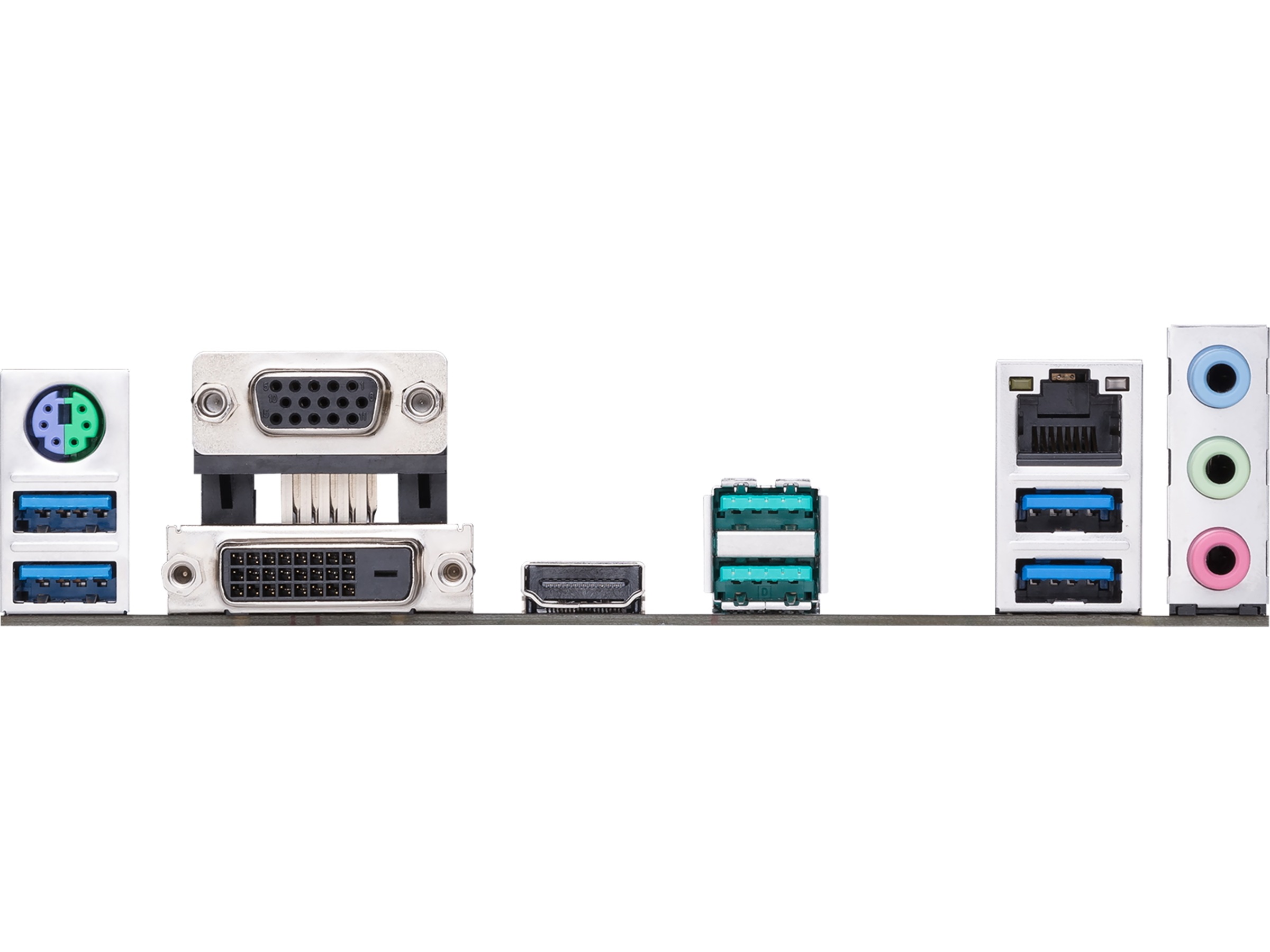 1 x ljudutgång - mini-jack, 2 x USB 3.2 Gen 2, 1 x PS/2-tangentbord/mus, 1 x DVI-D, 1 x HDMI, 1 x mikrofon - mini-jack, 4 x USB 3.2 Gen 1, 1 x ljudingång - mini-jack, 1 x LAN (Gigabit Ethernet), 1 x VGA |