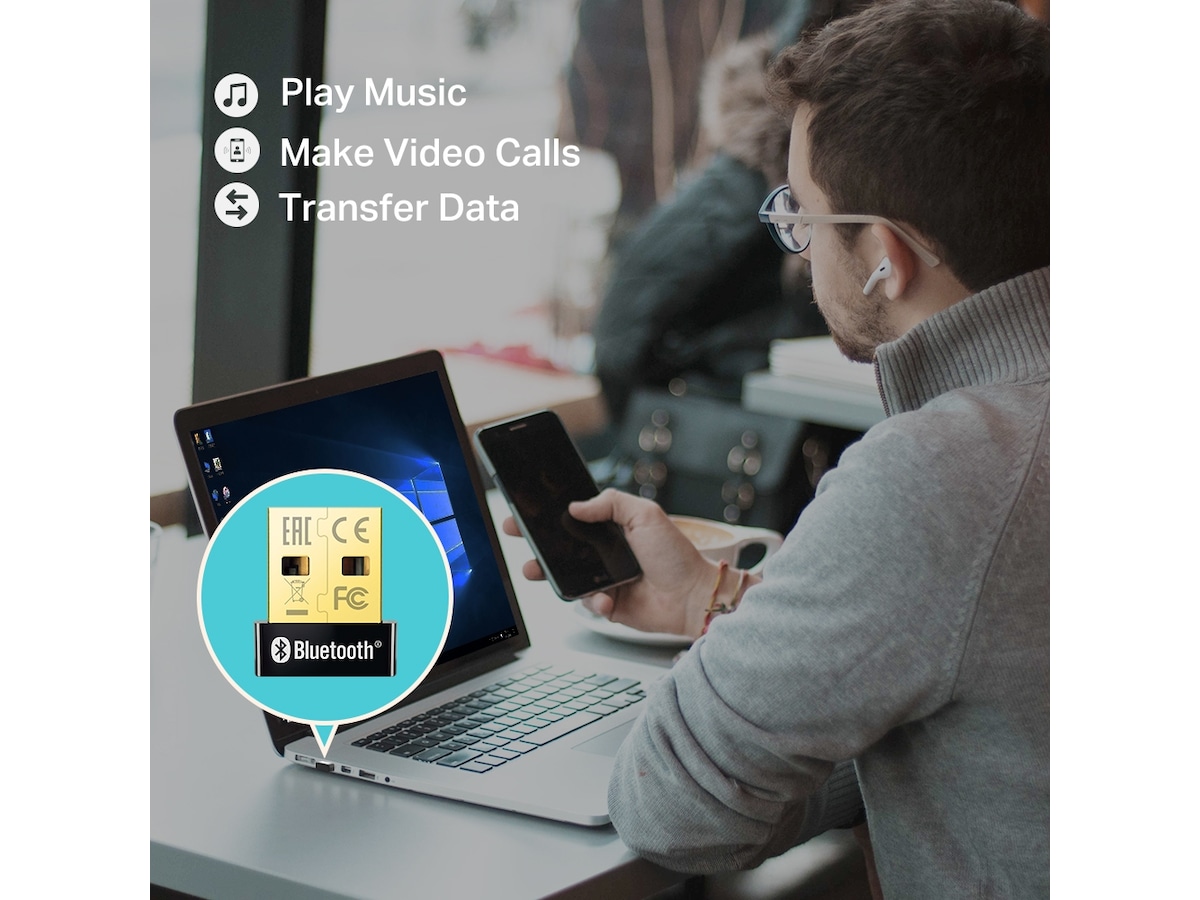 UB400 förvandlar en icke-Bluetooth-kapabel dator eller laptop till Bluetooth-kapabel. Du behöver bara ansluta dina Bluetooth-enheter till din dator för enkel användning.