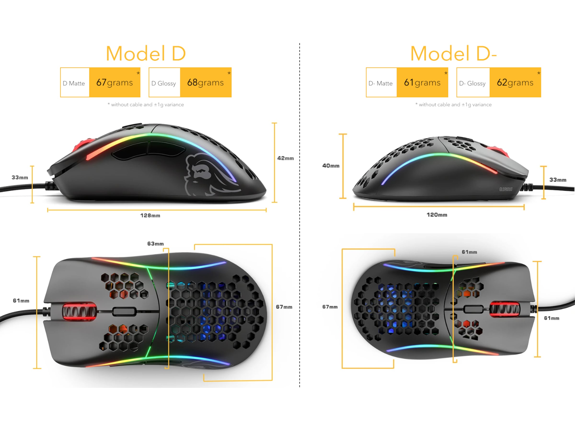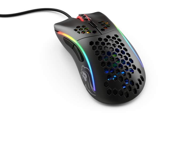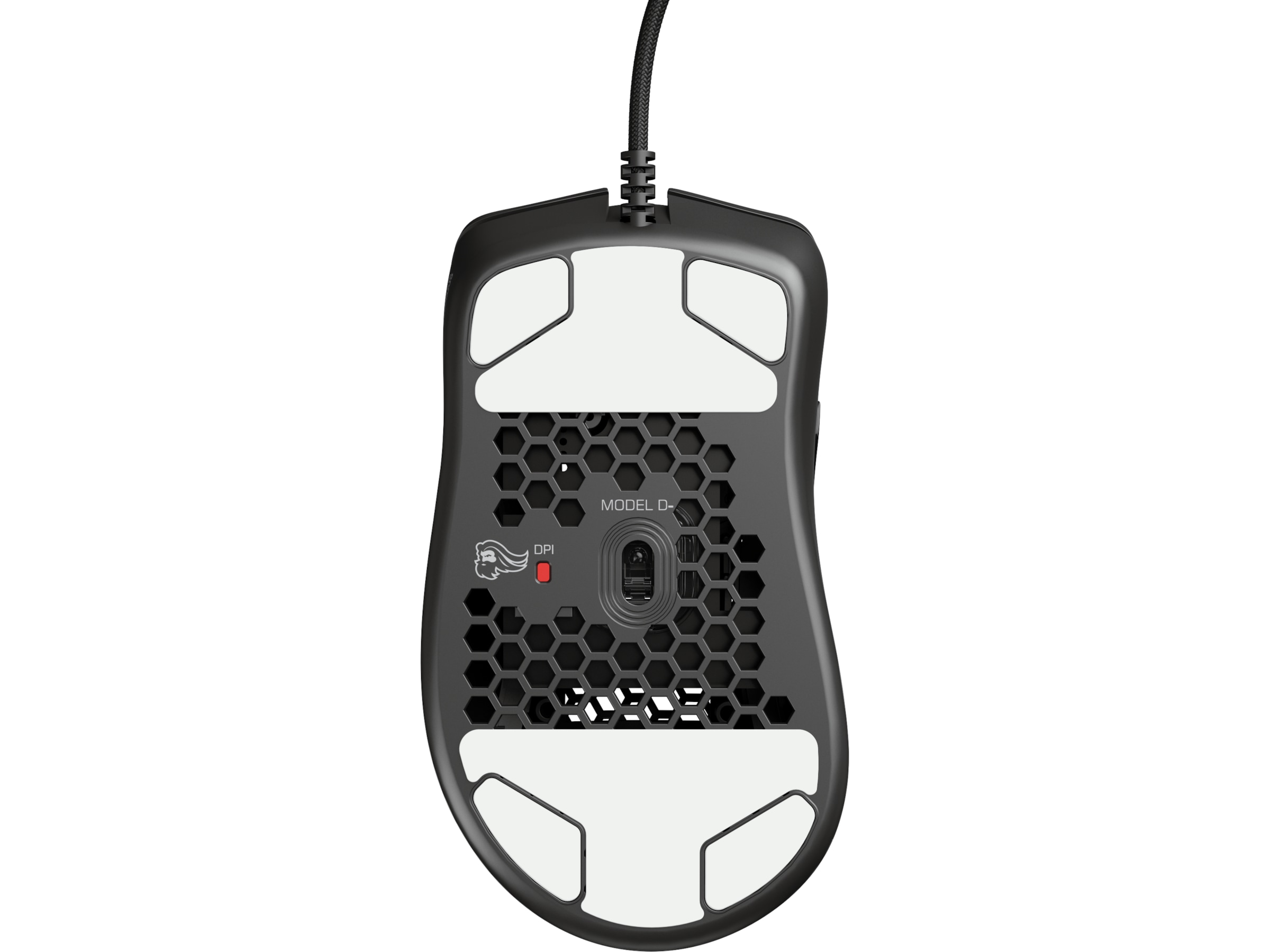 Modell D-:s hölje med vaxkakastruktur är nyckeln till den fjäderlätta vikten, samtidigt som ultratålig styrka bibehålls. Du kommer knappt att märka hålen under spelets gång, men de ger ventilation som håller handflatorna svala och fräscha. Rengöringen av Modell D- är enkel; använd bara en valfri luftbehållare för att hålla musen så gott som ny.