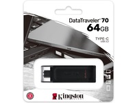 Kingstons DataTraveler 70 är ett lättviktigt USB-C-minne med USB 3.2 Gen 1-hastigheter som enkelt följer med överallt. Det är avsett för kompatibla USB-C-enheter som bärbara datorer, surfplattor och smarta mobiler. Med en kapacitet på upp till 128 GB hjälper DataTraveler70 dig att utöka din lagringskapacitet för dagligt bruk. Det säljs med fem års garanti och kostnadsfri teknisk support.