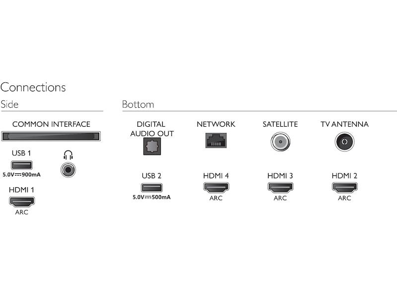 Anslutningstyp 4 x HDMI, Service, LAN, Hörlurar, 2 x USB, Digital ljudutgång (optisk)