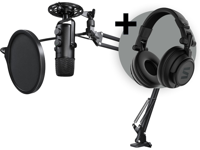 Paketet levereras med ett popfilter som hjälper dig att få ett rent, professionellt ljud. Filtret tar bort brus från uttalet av slutna ljud som P, B och S. Kombinerat med resten av kitet blir inspelningen kristallklar och kräver mindre redigeringstid.