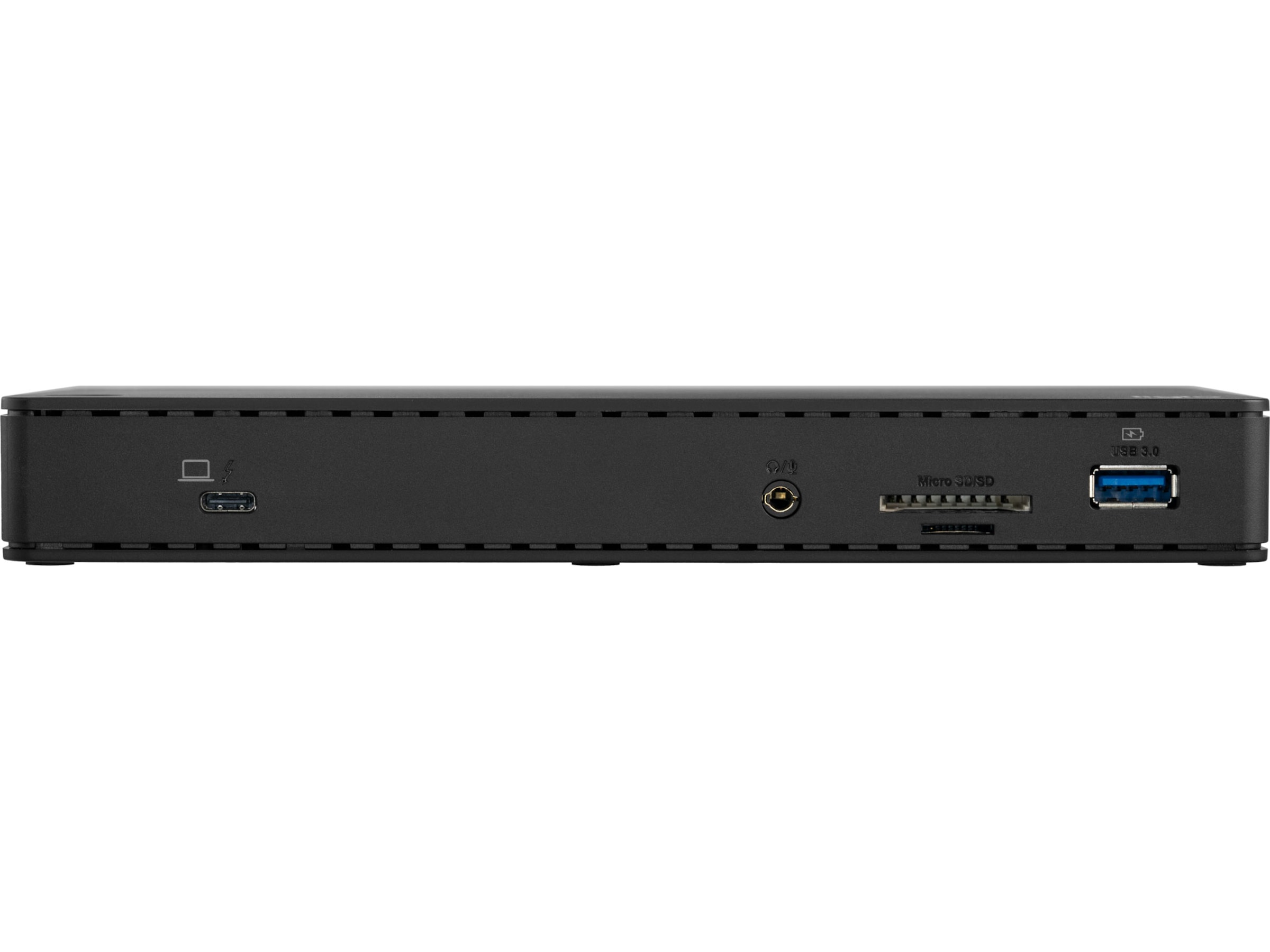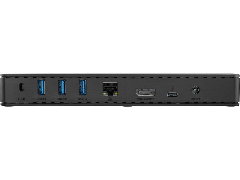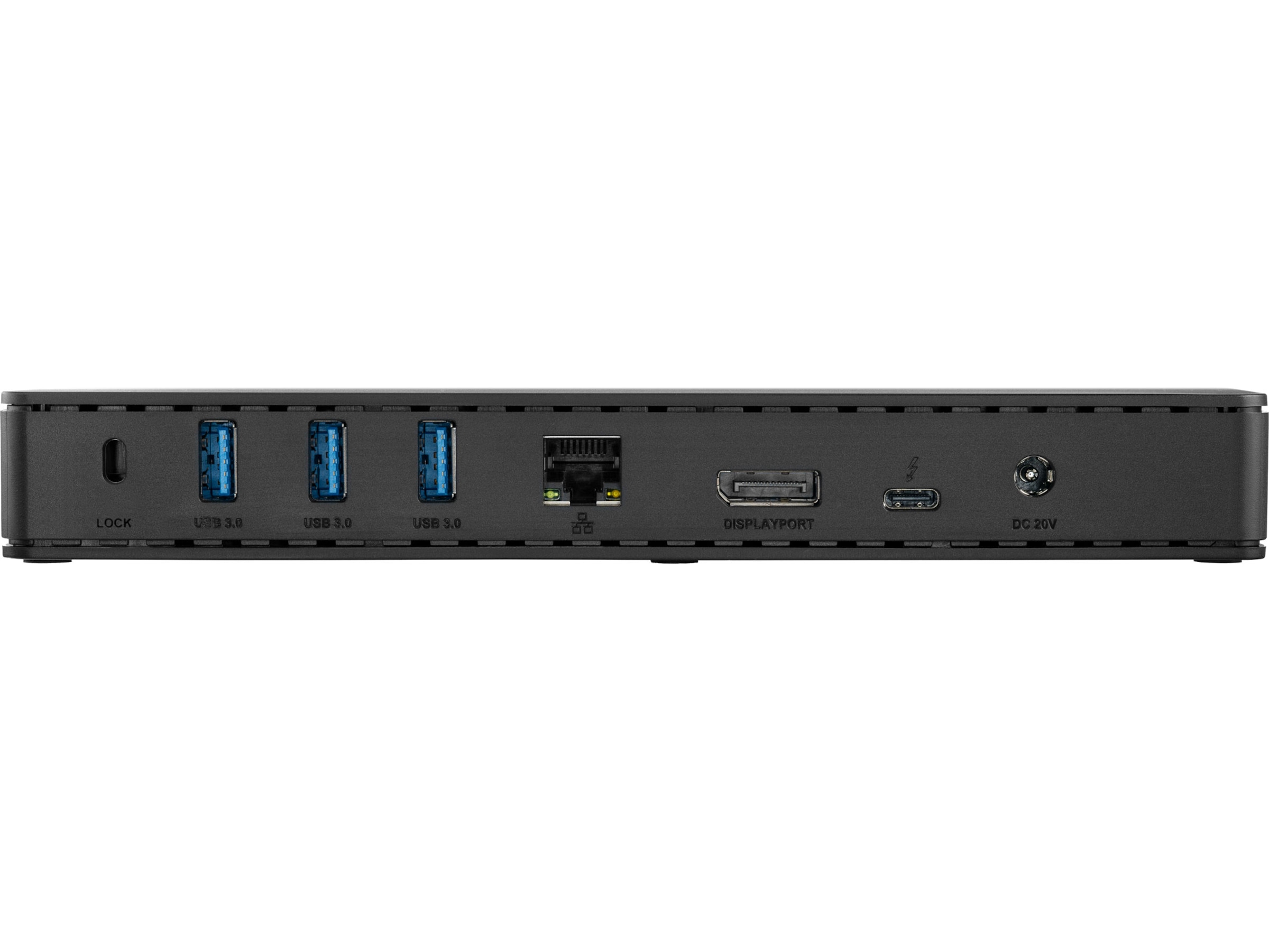 Dockningsstationen möjliggör en upplösning på upp till 4K vid 60 Hz för två skärmar via en DisplayPort eller båda av Thunderbolt™3-portarna.
