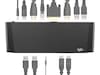 Med dockningsstationen kan du använda upp till 3 skärmar samtidigt. DVI- och HDMI-porten gör det möjligt att få en 2K-upplösning, medan den andra HDMI-porten har stöd för skärmar på upp till 4K vid 30 Hz via USB-C Alt-läge.