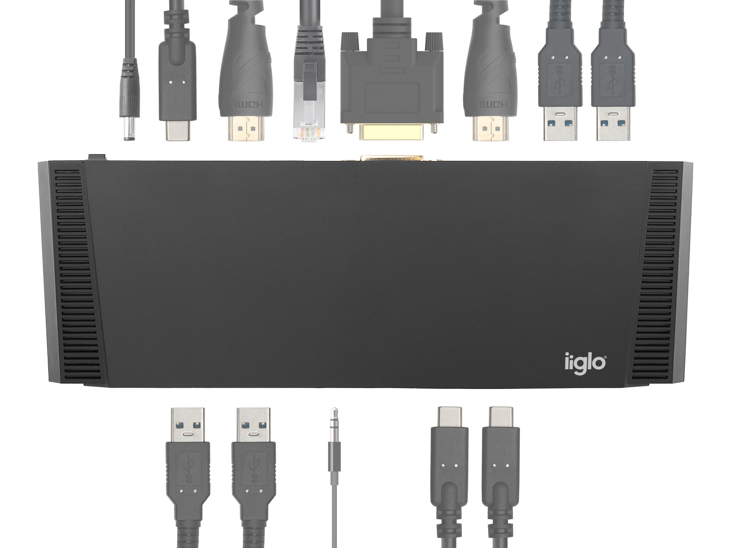 Bärbara datorer och andra mobila enheter blir tunnare för varje år som går. Det är ofta på bekostnad av anslutningsportarna, till exempel LAN- och extra USB-portar. Det gör att iiglo USB 3.0 Multiport Triple Screen Docking Station kan utöka din arbetsyta genom att göra det möjligt att lägga till tre skärmar och ansluta all kringutrustning med bara en kabel inkopplad i den bärbara datorn. Genom att ansluta en enda USB 3.0-kabel till din enhet får du ytterligare 12 portar, vilket gör det enkelt att maximera din arbetsyta och produktivitet.