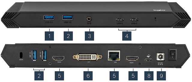Iiglo Triple Screen Docking är kompatibel med Windows 7 eller senare och Apple Mac OS 10.6 eller senare. Den kan dessutom anslutas antingen via USB typ C- eller USB typ A-port på din enhet med de medföljande kablarna.
