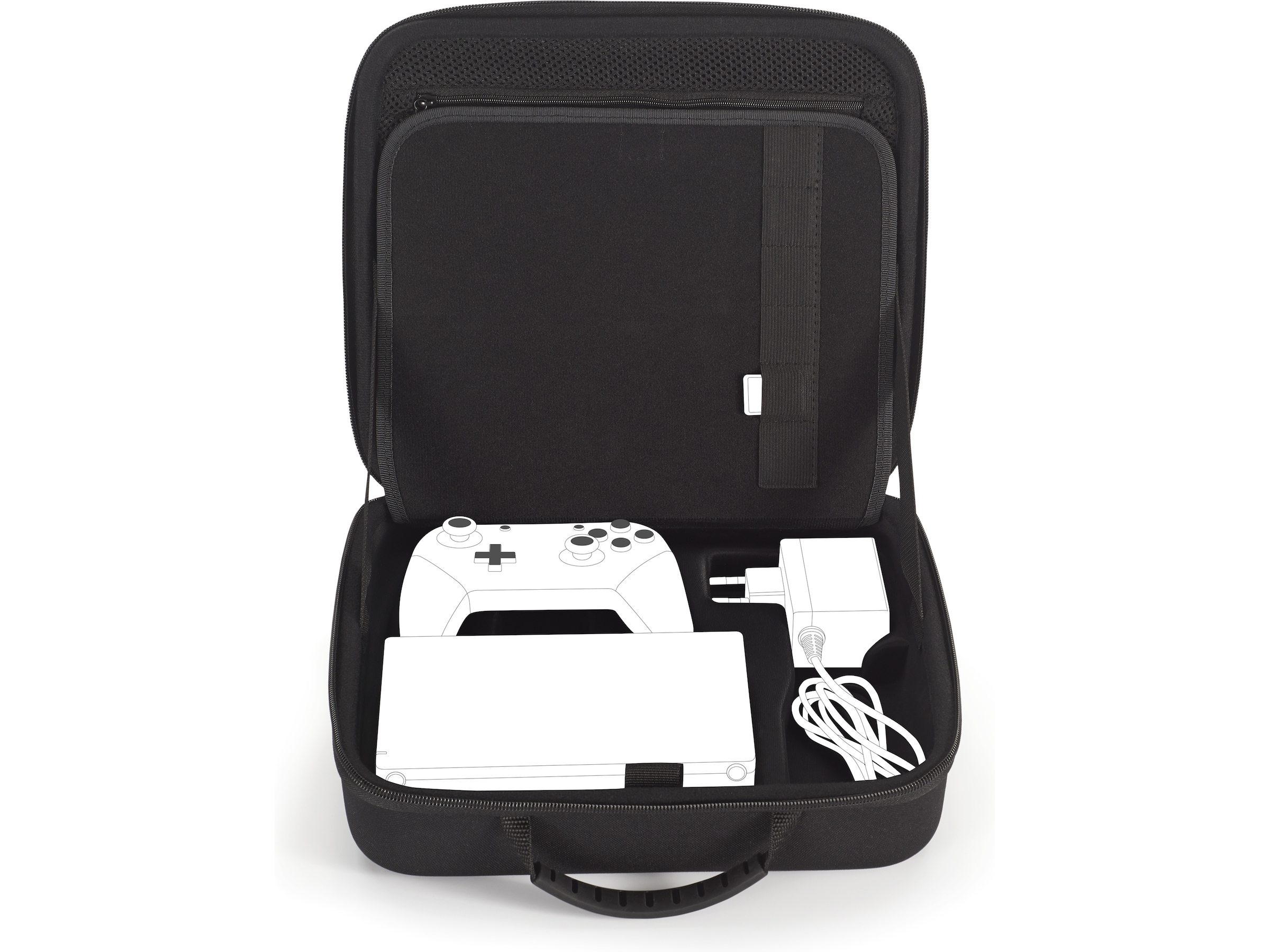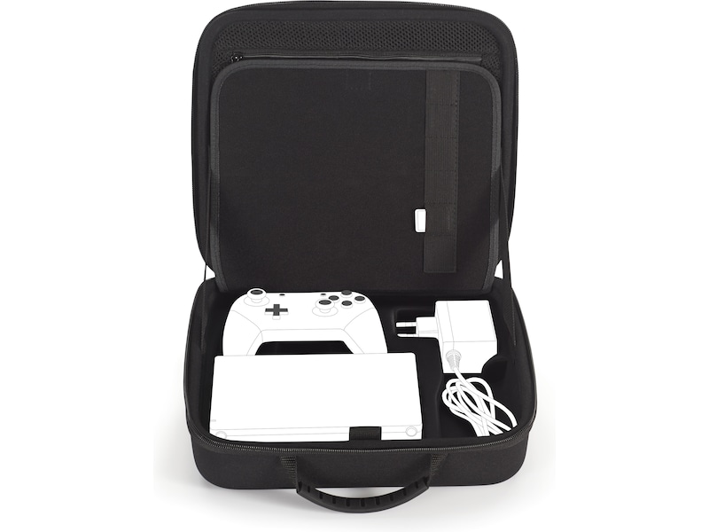 Idealiskt för att bära och skydda din konsol med dess laddningsdocka och tillbehör