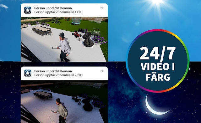 Tydligt mörkerseende i färg hjälper dig att enklare identifiera detaljer som ansikten och kläder även i mörkret.