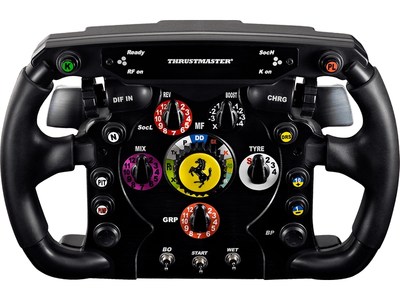 Ferrari F1 Wheel Add-On är en kopia av Formel 1 Ferrari 2011-ratten i naturlig storlek, officiellt licensierad av Ferrari. Rattens design och ergonomi kommer att möta förväntningarna hos även de största fans av Formel 1 och det ikoniska varumärket Ferrari. Det strukturerade gummigreppet möjliggör realistisk och bekväm hantering.
