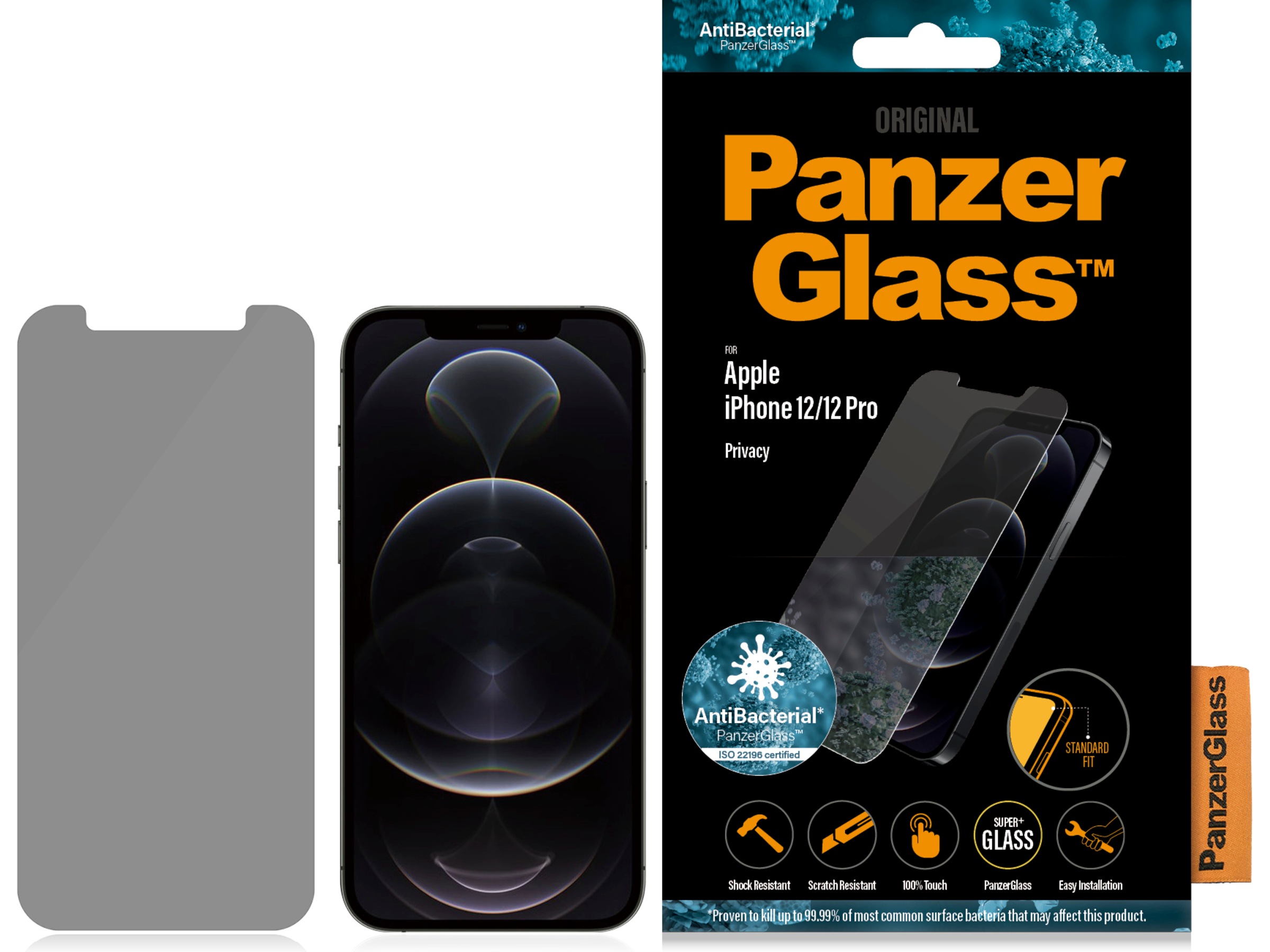 PanzerGlass™ Standard Fit för iPhone 12/12 Pro är gjord av platt härdat glas. Den är reducerad i storlek och har ett sekretessfilter som skyddar innehållet på displayen och ett helt silikonlim som ger perfekt beröringskänslighet.