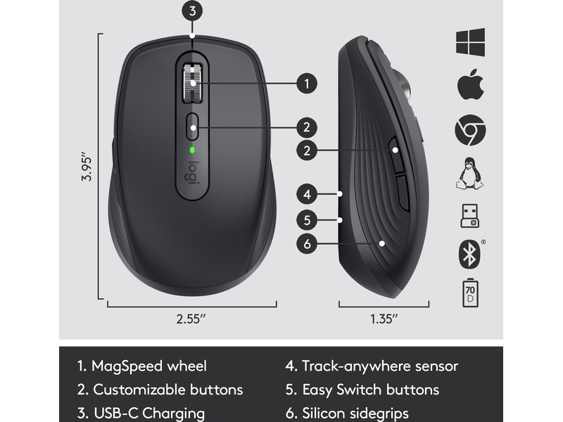 Logitech Darkfield Laser Tracking, Silikongrepp, MagSpeed-hjul, Programmerbara knappar |