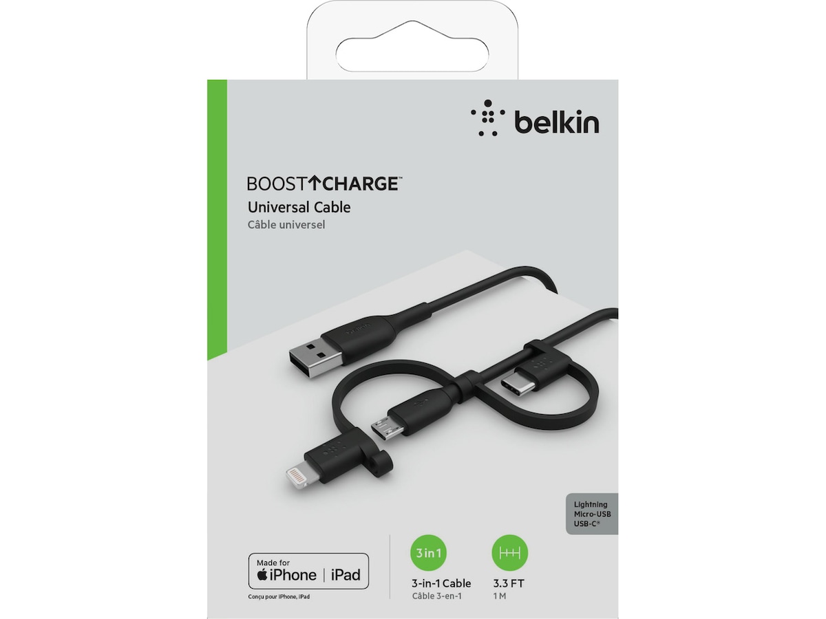 1m USB-A-kabel med USB-C,® Micro-USB- och Lightning-kontakter