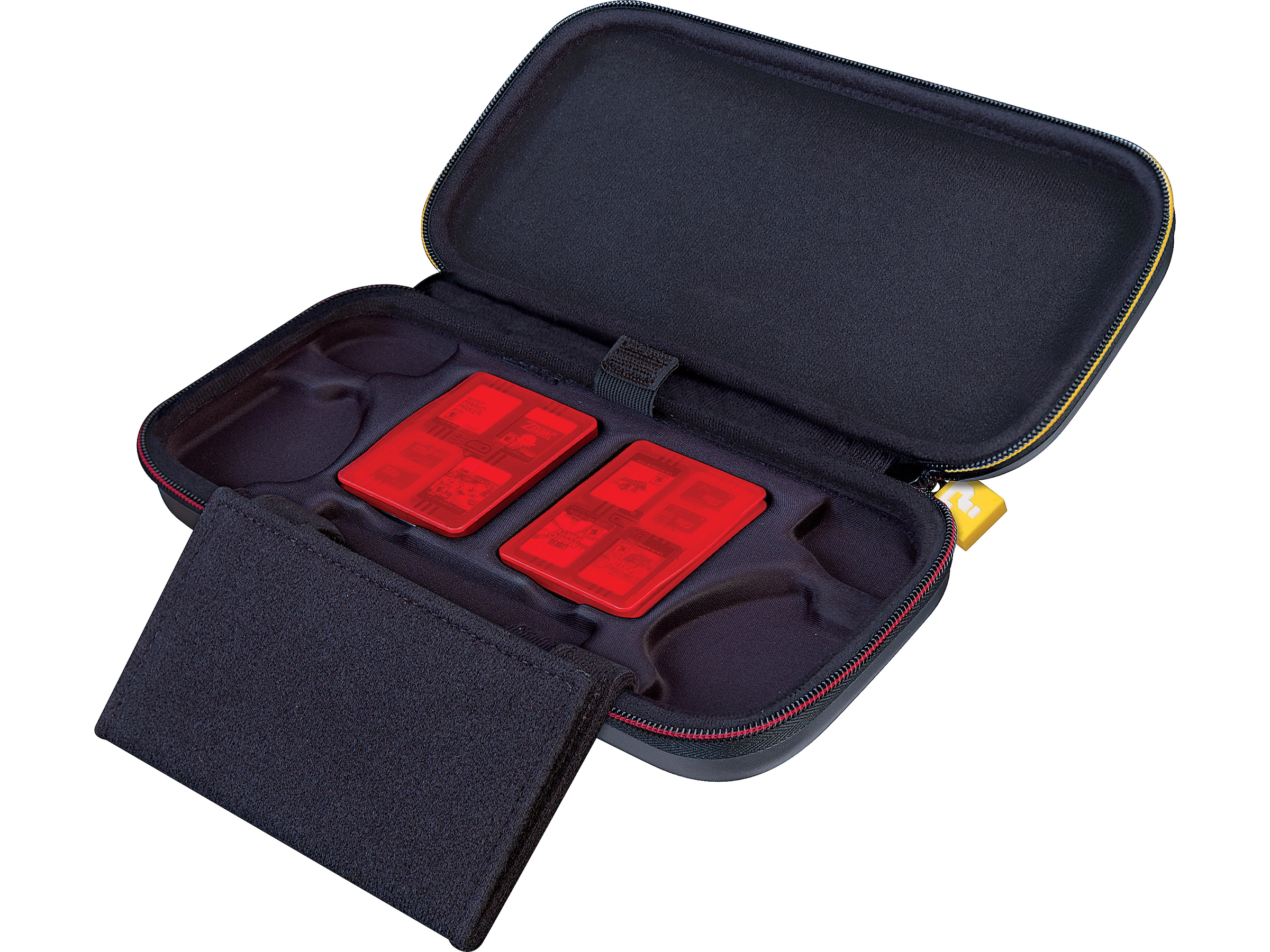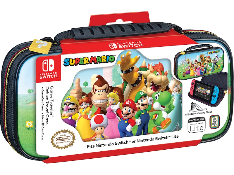 En läcker väska med Nintendo Characters-motiv som skyddar din Nintendo Switch från smuts och repor och håller dina favoritspel på plats när du är på resande fot.