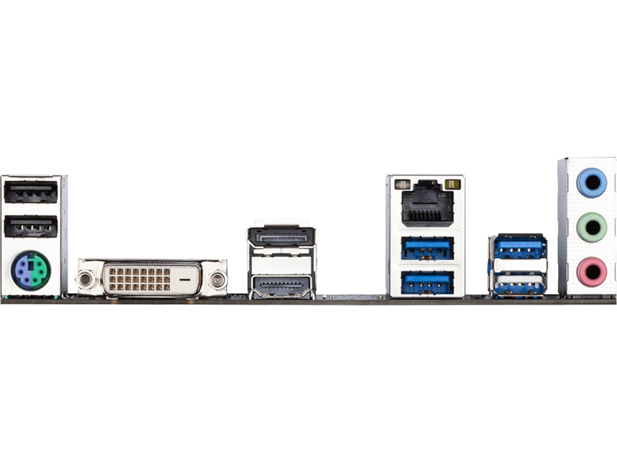 1 x DisplayPort, 1 x ljudingång - mini-jack, 1 x DVI-D, 1 x HDMI, 1 x ljudutgång - mini-jack, 1 x PS/2-tangentbord/mus, 2 x USB 2.0, 1 x mikrofon - mini-jack, 1 x LAN (Gigabit Ethernet), 4 x USB 3.2 Gen 1 |