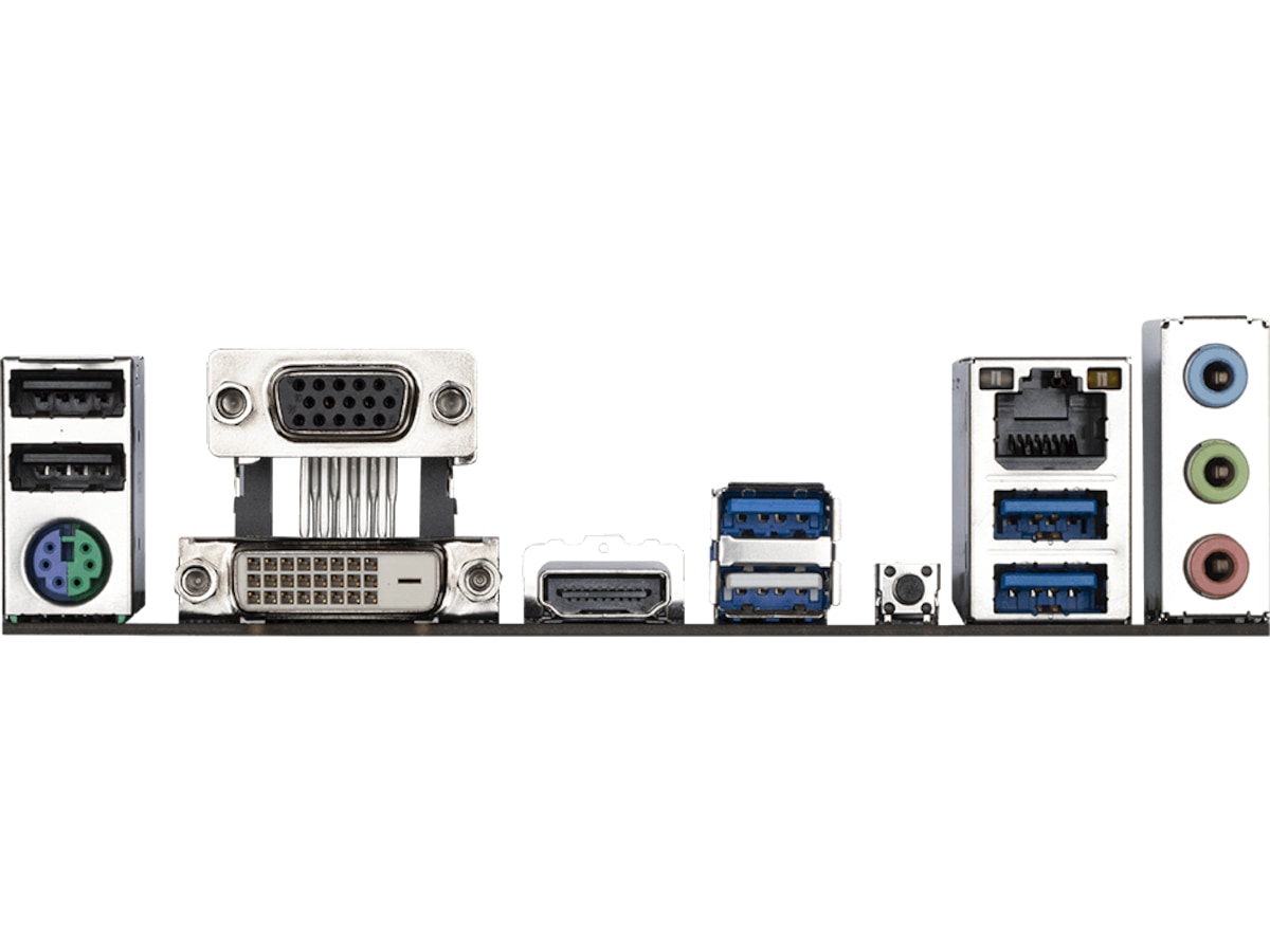 2 x USB 2.0, 1 x ljudingång - mini-jack, 1 x VGA, 1 x LAN (Gigabit Ethernet), 4 x USB 3.2 Gen 1, 1 x DVI-D, 1 x ljudutgång - mini-jack, 1 x PS/2-tangentbord/mus, 1 x mikrofon - mini-jack, 1 x HDMI |
