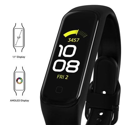 Galaxy Fit2 hjälper dig hålla rytmen och stilen. Det läckra 3D-glaset framhäver den eleganta designen och med den breda 1,1-tums AMOLED-skärmen i fullfärg får du med en snabb blick all information du behöver.