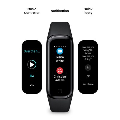 Galaxy Fit2 kan parkopplas med din Galaxy-mobil för tillgång till ytterligare funktionalitet. Du kan läsa inkommande aviseringar och svara direkt från handleden. Du kan även styra musiken i din mobilapp – utan att behöva ta fram mobilen.