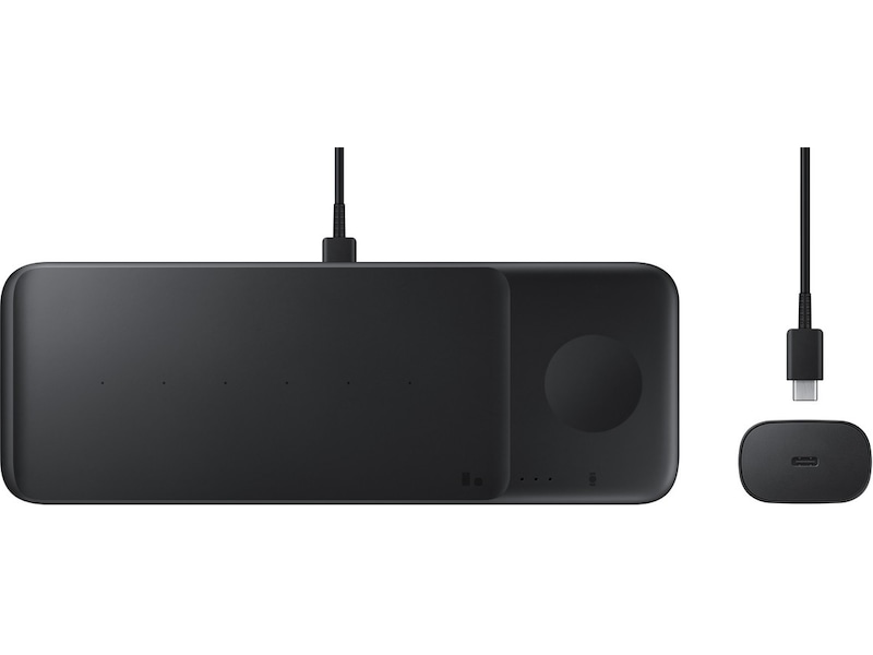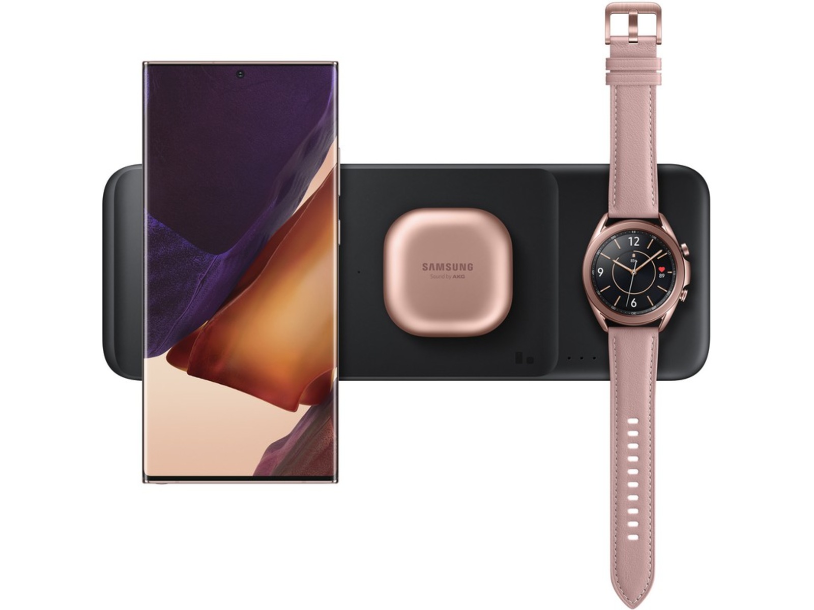 Med den dedikerade platsen för Galaxy-klockor kan du ladda din klocka så att den har ström hela dagen. En inre magnet på laddarens högra sida leder din klocka på plats för att ladda den. Och till vänster kan du ladda din telefon, Galaxy Buds-serien med mera.