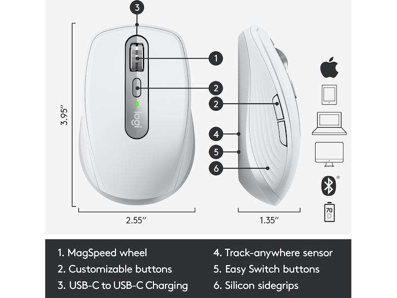 Logitech Darkfield Laser Tracking, Silikongrepp, MagSpeed-hjul, Programmerbara knappar, Logitech Flow |