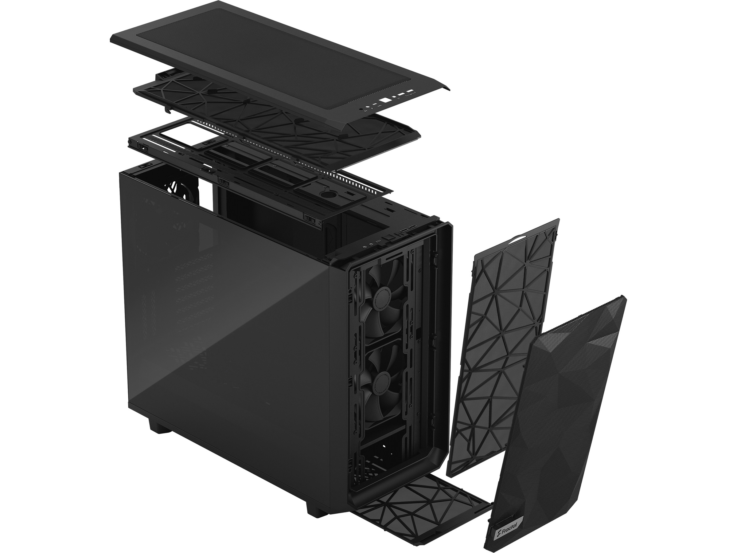 Meshify 2 är ett högpresterande chassi med en djärv, smyginspirerad estetik. Den slående exteriören består av en bultfri, helt avtagbar övre del som ger utmärkt inre åtkomst och en helt nydesignad front med USB-C, gångjärnspanel och avtagbart nylonfilter. Den flexibla interiören med dubbel layout stödjer stora lagringsytor och inställningar för flera radiatorer, vilket gör kylningen enkel och okomplicerad.