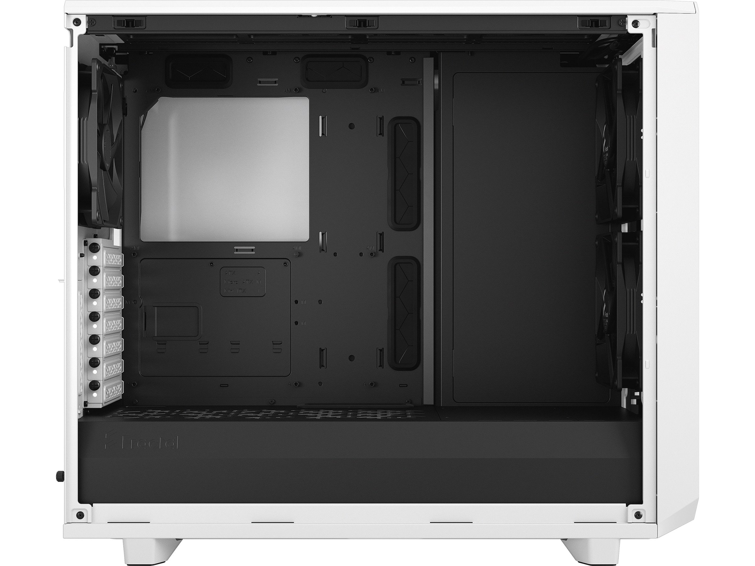 Den rymliga och omfattande anpassningsbara interiören med dubbel layout kan enkelt rymma stora moderkort upp till och inklusive 285 mm E-ATX. Stöd för radiatorer upp till 360 mm i fronten, 420 mm på toppen eller 280 mm vid basen i den öppna standardlayouten