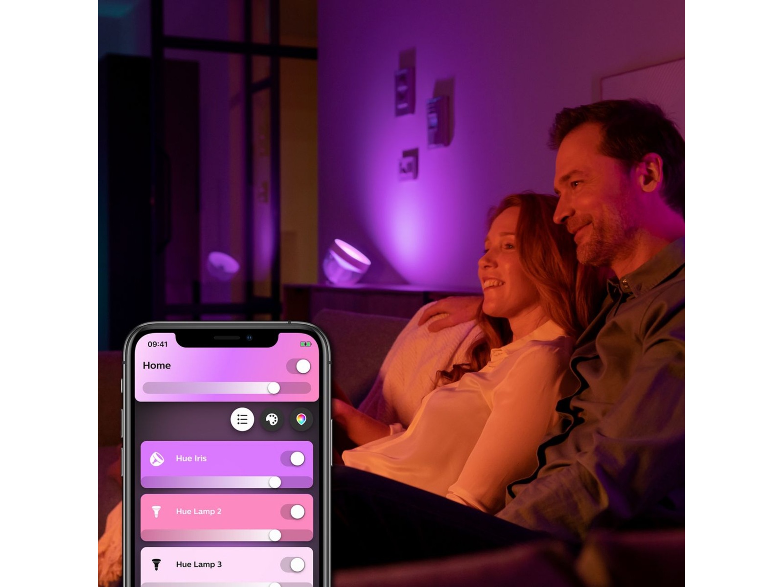 Iris skapar en avancerad och unik effekt genom att bada väggen i färger och är en behaglig bakgrundsbelysning. Använd den med Hue Bridge för att få ett komplett utbud av smarta belysningsfunktioner.