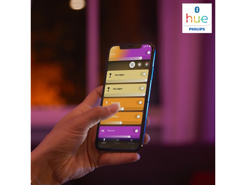 Med Hue Bluetooth-appen kan du styra den smarta Hue-belysningen i ett valfritt rum i hemmet. Lägg till upp till tio intelligenta ljuskällor och kontrollera dem alla med en knapptryckning på din mobila enhet.