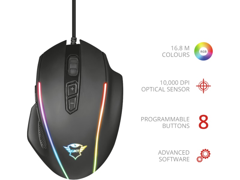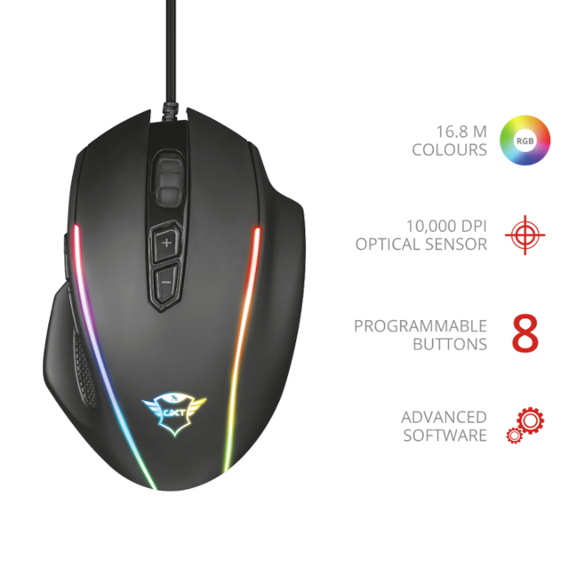 Den höga precisionen, exaktheten och anpassningsbarheten hos GXT 165 Celox spelmus håller dig steget före dina motståndare. Du har fullständig kontroll över alla åtgärder i spelet tack vare de programmerbara knapparna och makron. Gör dig redo att ta dig an alla utmaningar!