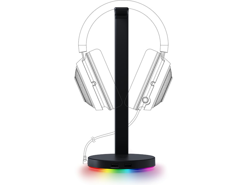 USB-hubb med 3,5 mm combo-uttag - för att stödja fler enheter och 7.1 gamingheadset Integrerat headsetstativ med halkskydd - för att hålla din inställning organiserad och stabil Drivs av Razer Chroma RGB - för en anpassningsbar belysning och större spelupplevelse