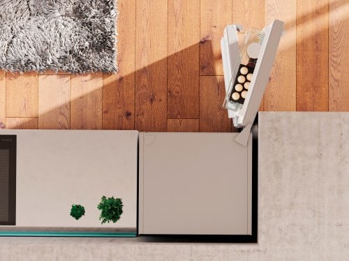 Tack vare möjligheten att öppna kylskåpet i rät vinkel kan alla hyllor och lådor dras ut helt. Denna lösning är idealisk för kylskåp som är placerade längs en sidovägg, eller mot en köksbänk eller någon annan del av inredningen.