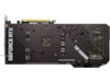 Undersidan av kortet avslöjar en mängd förbättringar. Det mesta av baksidan består av en skyddande metallplatta som framträdande har en bred ventilering. Ventilationen låter varm luft avledas mot chassits avgasfläktar istället för att återvinnas tillbaka till GPU-kylaren. Under GPU:n ger en konsol ett konstant monteringstryck mellan munstycket och värmespridaren. Rostfritt stål används för I/O-fästet för att skydda portarna och ge ett säkrare fäste. En bekvämt placerad Dual Bios-omkopplare möjliggör anpassning av kortets standardprestanda utan programvara.