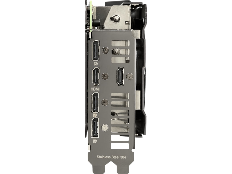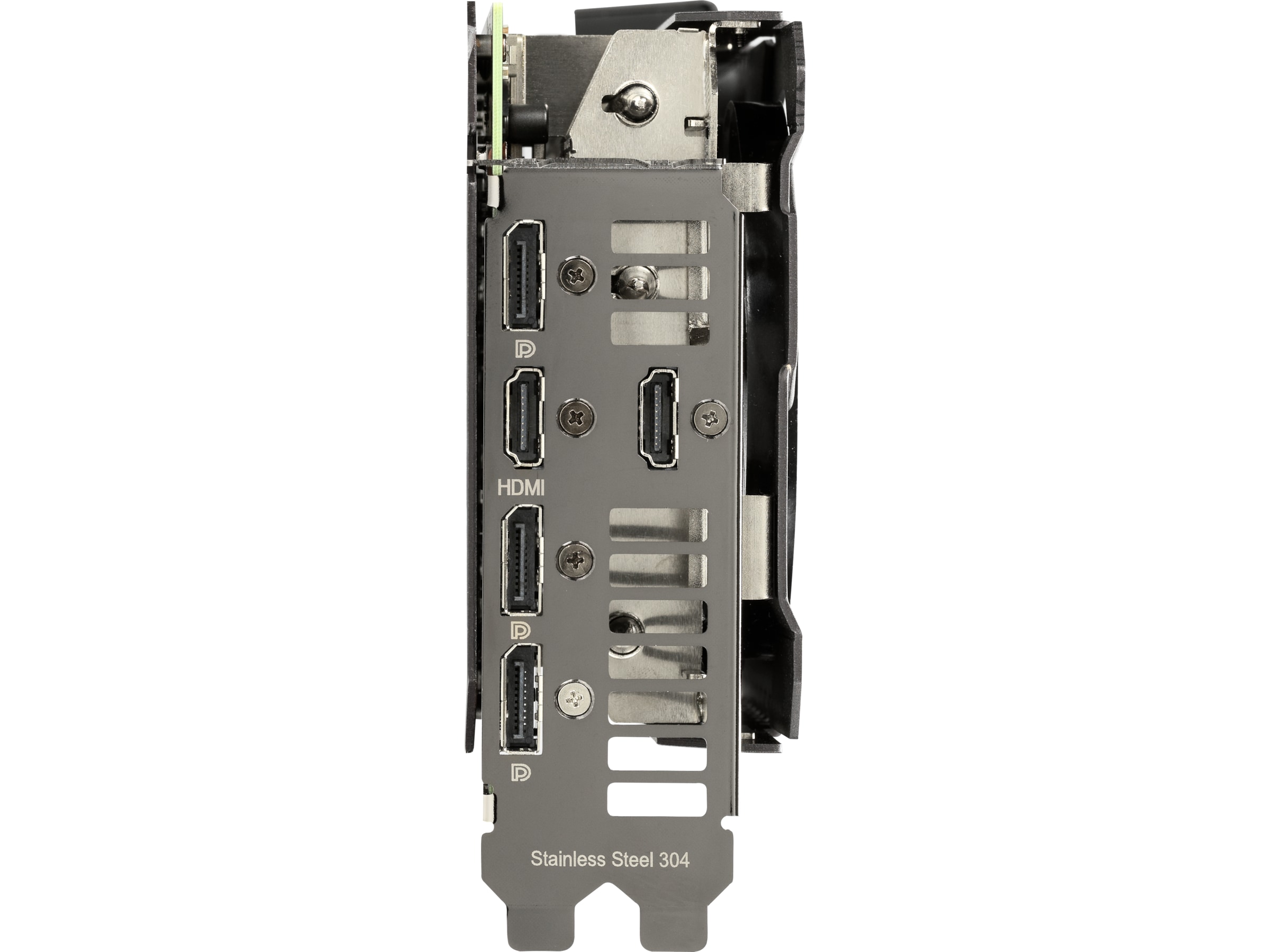 RGB-elementet på ovansidan kan anpassas med Armory Crate och synkroniseras med andra ASUS-komponenter för att möjliggöra enhetlig belysning. För att uppfylla strömbehovet hos GeForce RTX 3080 finns två 8-poliga strömkontakter, som tillsammans med en inbyggd krets övervakar PSU-skenans spänning.