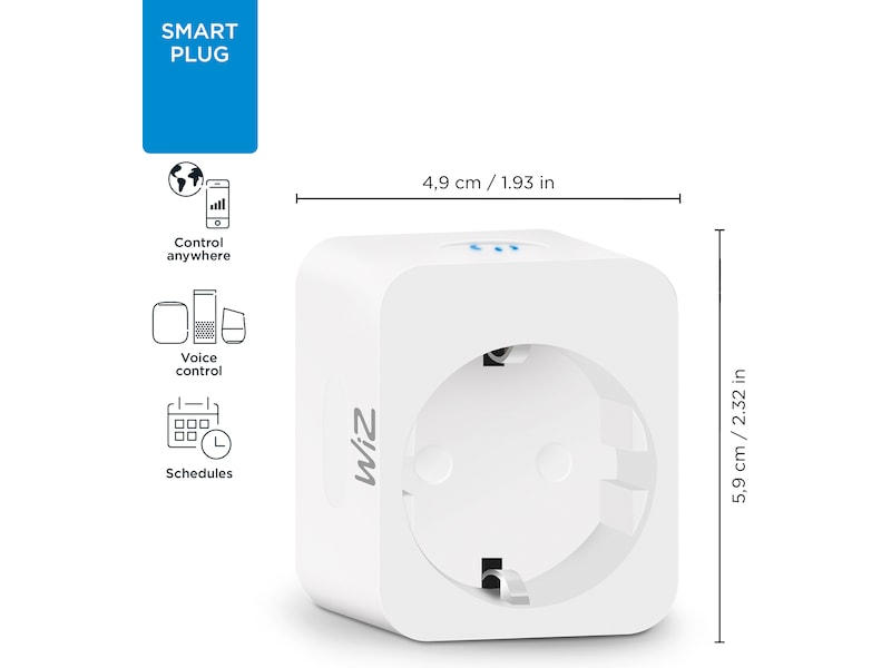 Den kostnadsfria, användarvänliga WiZ-appen låter dig skapa scheman, ställa in timers och slå på och stänga av dina enheter. Med smart plug kan du alltid komma åt och styra alla lampor och apparater i ditt hem från din telefon.
