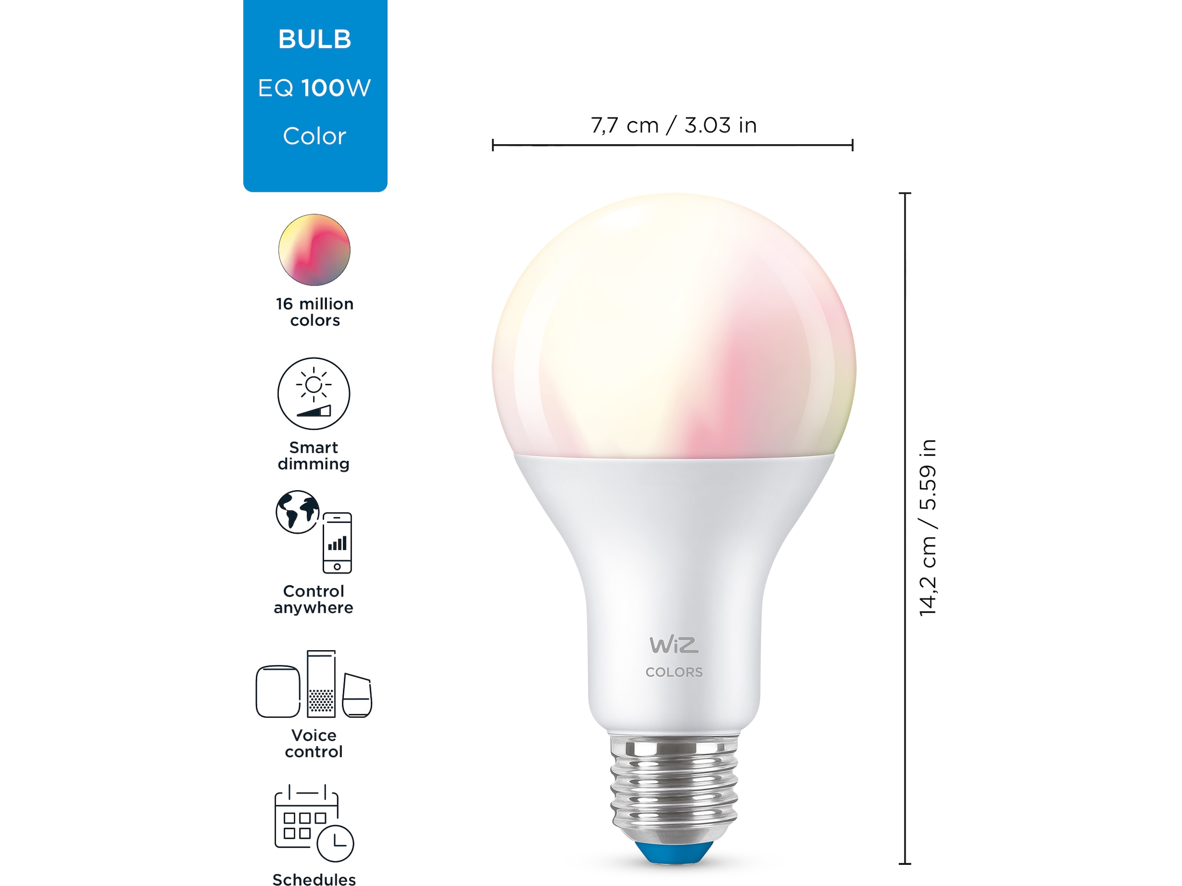 Blanda färgstarka och vita ljuslägen för att skapa det perfekta stämningsläget för dig. Spara inställningarna och aktivera när som helst med hjälp av appen, WiZmote eller din röst.