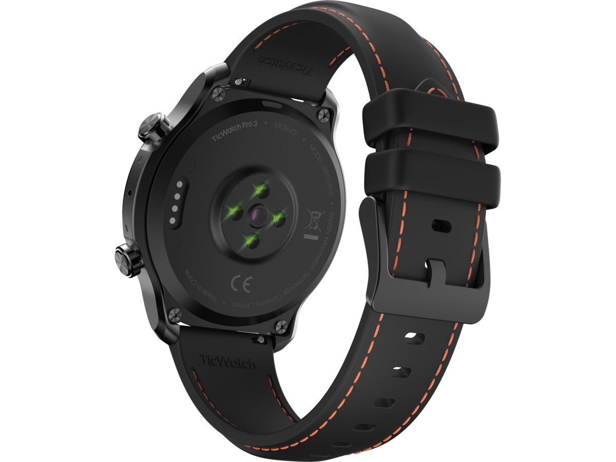 TicWatch Pro 3 GPS levereras med ett utbytbart armband som har optimerats för en aktiv livsstil. Den högkvalitativa silikonremmen är extremt mångsidig och hudvänlig, med sitt vadderade läderutseende och orange sömmar.