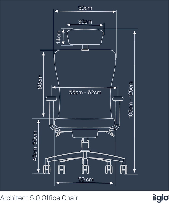 Vi tillbringar många timmar om dagen i sittande ställning. Därför är det viktigt att ha bekväma kontorsmöbler. Därför har iiglo Architect både ländryggsstöd och nackstöd som går att justera på höjden. Du kan också justera sittdjupet. Allt som hjälper dig att upprätthålla en hälsosam hållning och samtidigt minska trycket på delar av bäckenet och knäna.