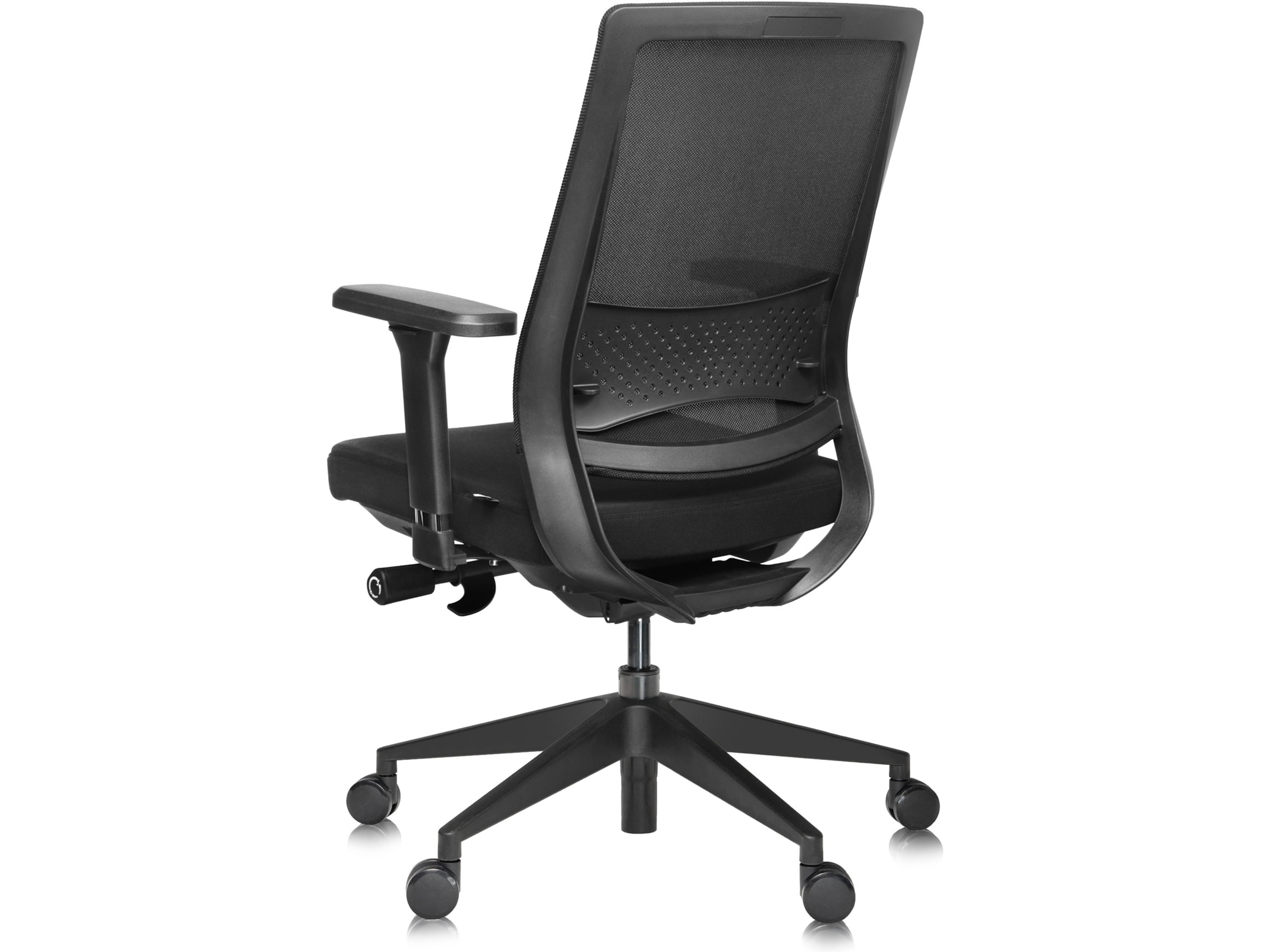 Kontorsstolen iiglo har ett justerbart lutande ryggstöd som kan låsas i mellan 90 och 108 grader. Det ger därför utmärkt stöd för koncentrerat arbete och gör det möjligt att ha en mer avslappnad sittställning.
