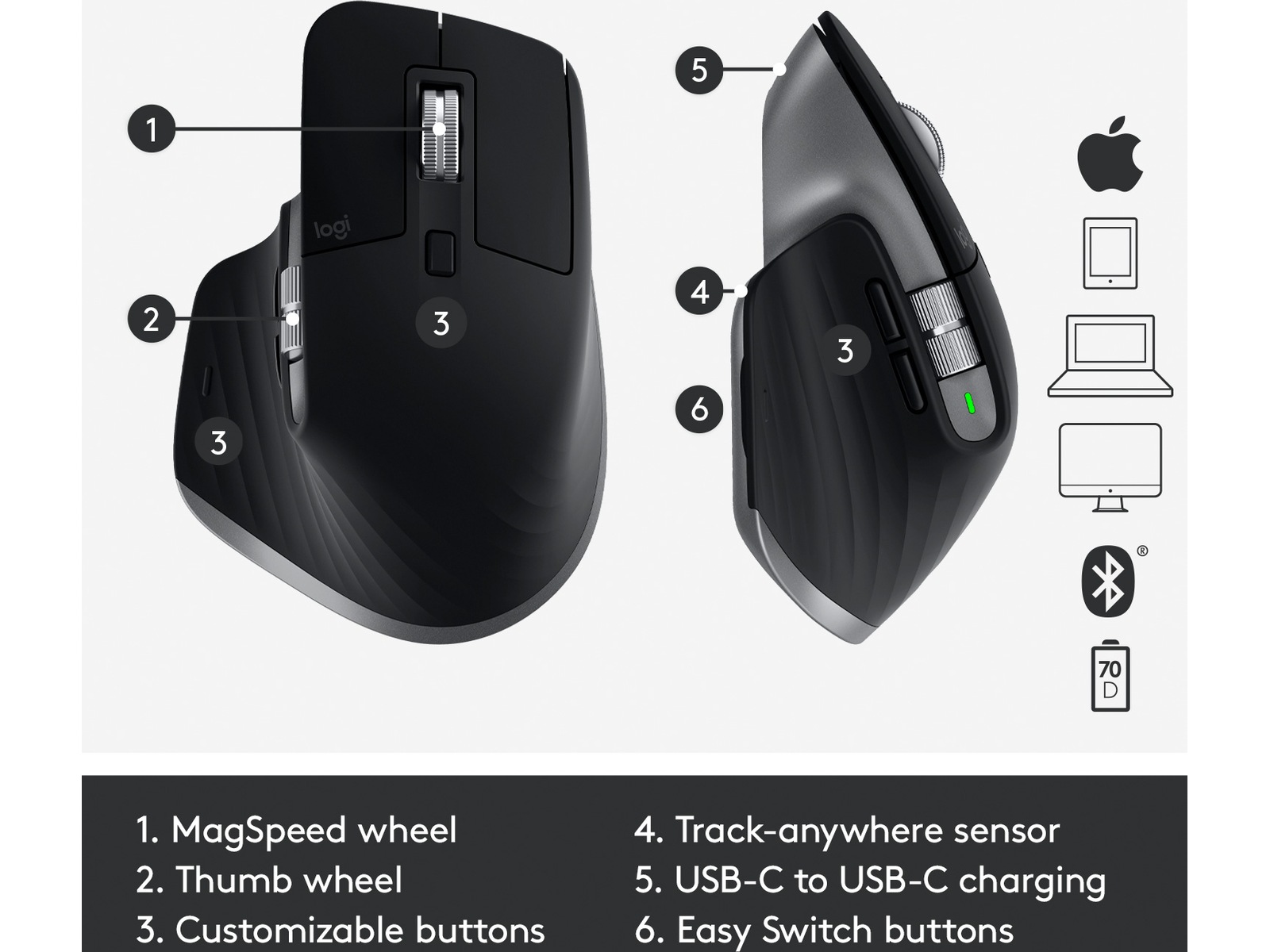 Gestfunktion, Sidohjul, Logitech Darkfield Laser Tracking, MagSpeed-hjul |