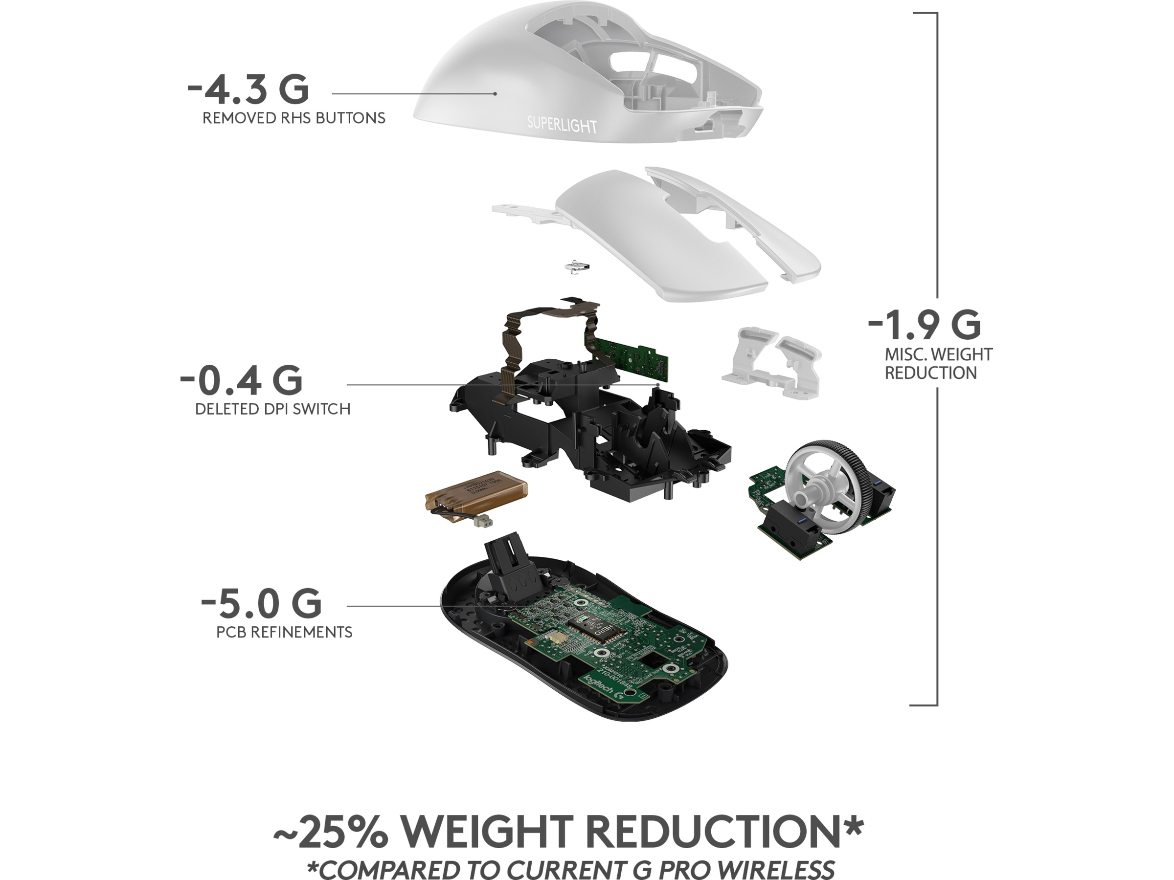 Fötter av polytetrafluoretylen (PTFE), LIGHTSPEED-teknik, HERO-sensor, ARM 32-bitars processor |