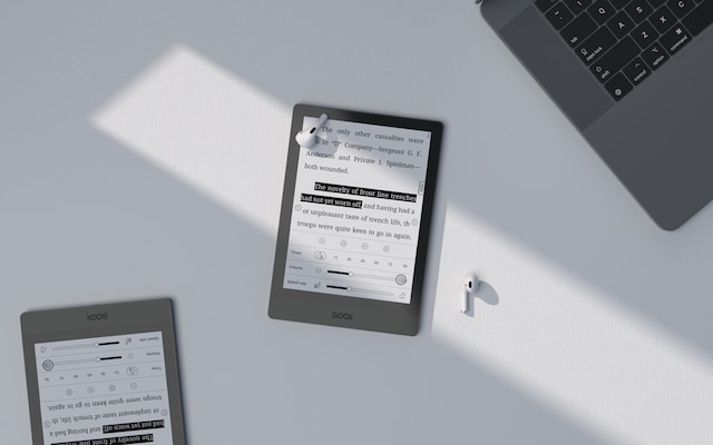 Med BOOX-programvaran kan användaren öppna filer i olika text- och grafikformat. När du läser kan du ändra typsnitt och storlek, placering av sidor, infoga bokmärken, lägga till dina egna teckensnitt och zooma dokument efter din önskan.