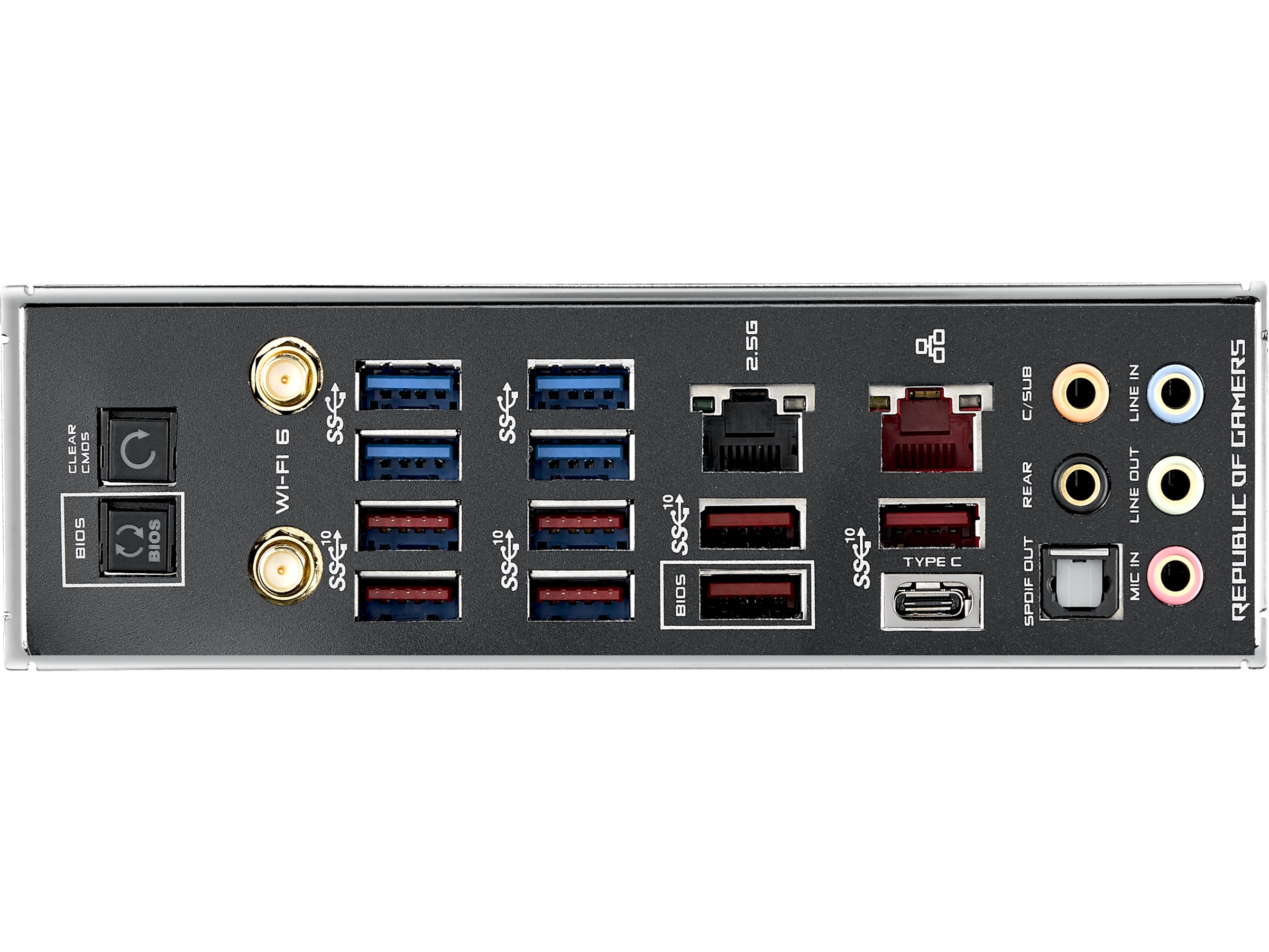 - Högpresterande nätverk: Inbyggd WiFi 6 (802.11ax) med MU-MIMO-stöd, 2,5 Gbps Ethernet och Gigabit Ethernet, båda med ASUS LANGuard-skydd och stöd för GameFirst VI-programvaran.