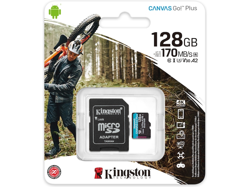 Kingstons Canvas Go! Plus microSD är för äventyrare som alltid är på språng och jagar det perfekta ögonblicket att fånga. Med överlägsna överföringshastigheter på upp till 170 MB/s accelererar Canvas Go! Plus microSD-kort ditt arbetsflöde och effektivitet så att du får mer tid att ta med din kreativitet till nästa äventyr. Spela in fantastiska 4K Ultra-HD-videor med U3- och V30-hastighetsprestanda utan att oroa dig för låga hastigheter och tappade bildrutor, eller ta snabba bilder som är sömlösa och konsekventa. Canvas Go! Plus microSD stödjer A2 Application Performance Class för att påskynda ditt arbetsflöde med snabbare apprestanda på smartphones och surfplattor. En valfri SD-adapter ger extra mångsidighet för användning med SD-kompatibla enheter. Se världen som din canvas och ta med din kreativitet och inspiration på vägen med Canvas Go! Plus microSD.