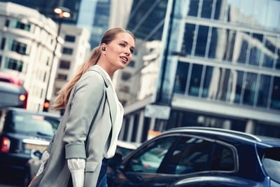 Vi har lagt in hela 6 mikrofoner med proffskvalitet i de här små öronsnäckorna. 3 på varje sida. Och så får du SideTone också. Så att du kan höra din egen röst mer naturligt i samtalen. Och våra senaste, mest avancerade vindskyddsalgoritmer för kristallklara samtal.