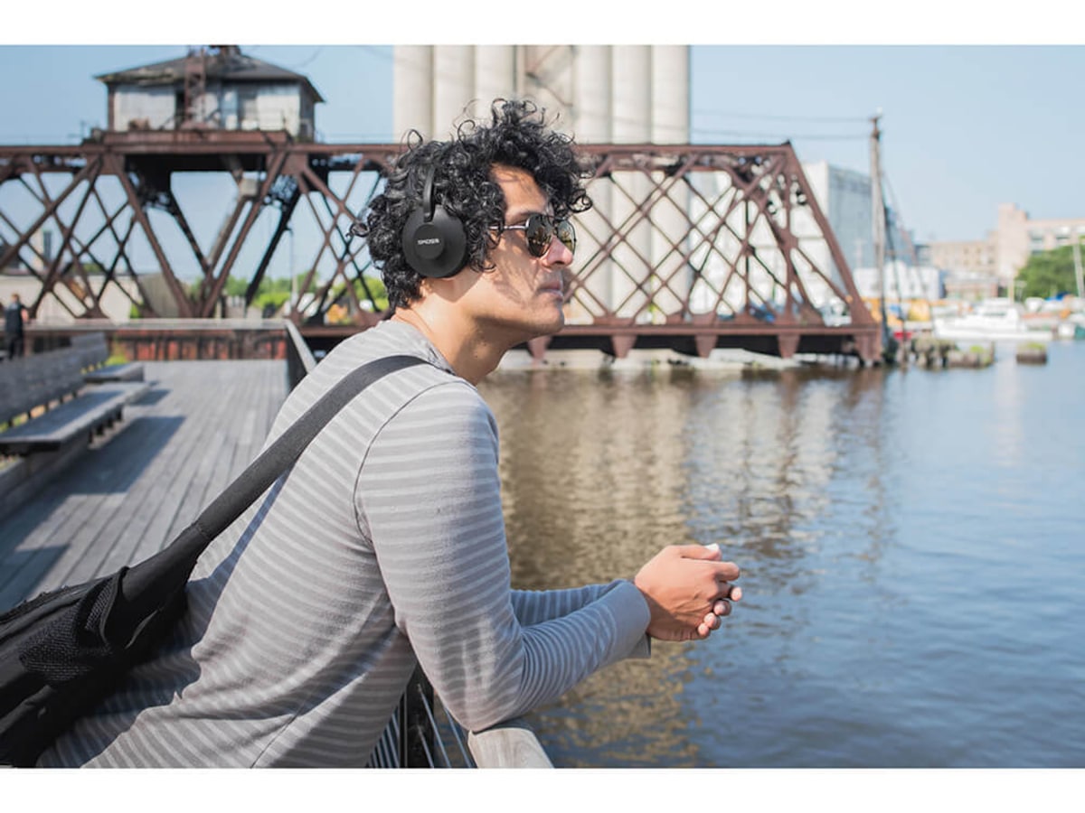 Ett nytt välkänt trådlöst headset med inbyggd mikrofon och knappar för att styra samtal, spår och volym.
