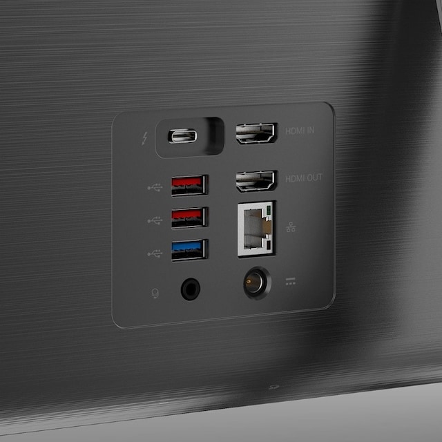1 x LAN (Gigabit Ethernet), 1 x Thunderbolt, 2 x USB 3.2 Gen 1, 2 x USB 3.2 Gen 2, 1 x HDMI-utmatning, 1 x hörlurar/mikrofon, 1 x USB 2.0, 1 x HDMI-inmatning