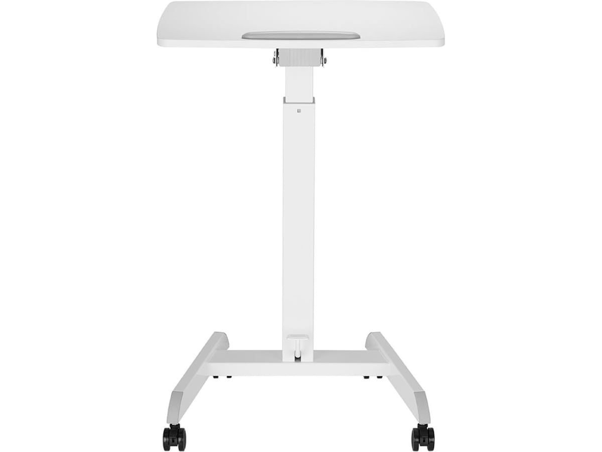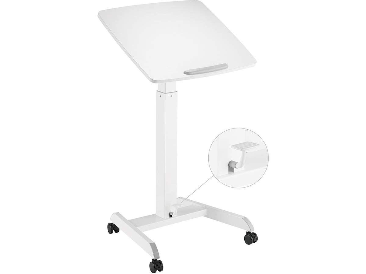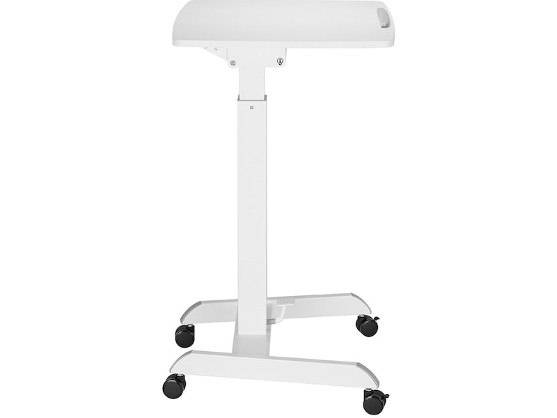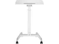 Bordet finns i melaminlaminat, ABS-kant. Justeringsområde 75,8 - 112,8 cm. Lätt justerbart och rörligt bord, tillåter aktivt arbete både sittande och stående. Justerbart bord med gasfjäder med justering av bordsskivan - 758 mm - 1128 mm justeringsområde, bordets mått 600 mm x 520 mm.