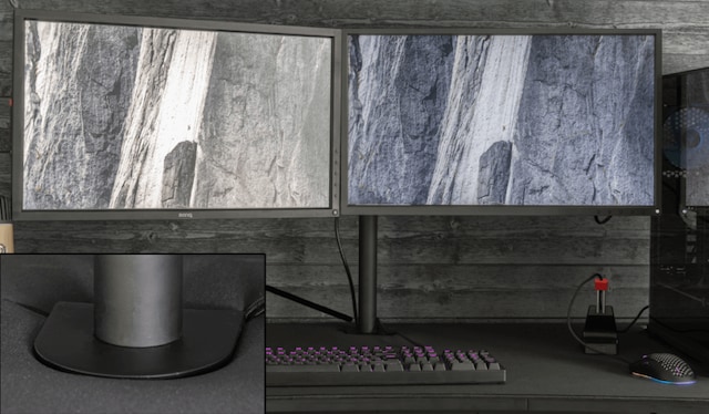 De 3 utskärningarna är inte bara avsedda för kabelhantering, men också för att montera skärmar. Det 5,3 tum (160 cm) breda skrivbordet är rymligt nog att rymma 3 stora och medelstora skärmar.